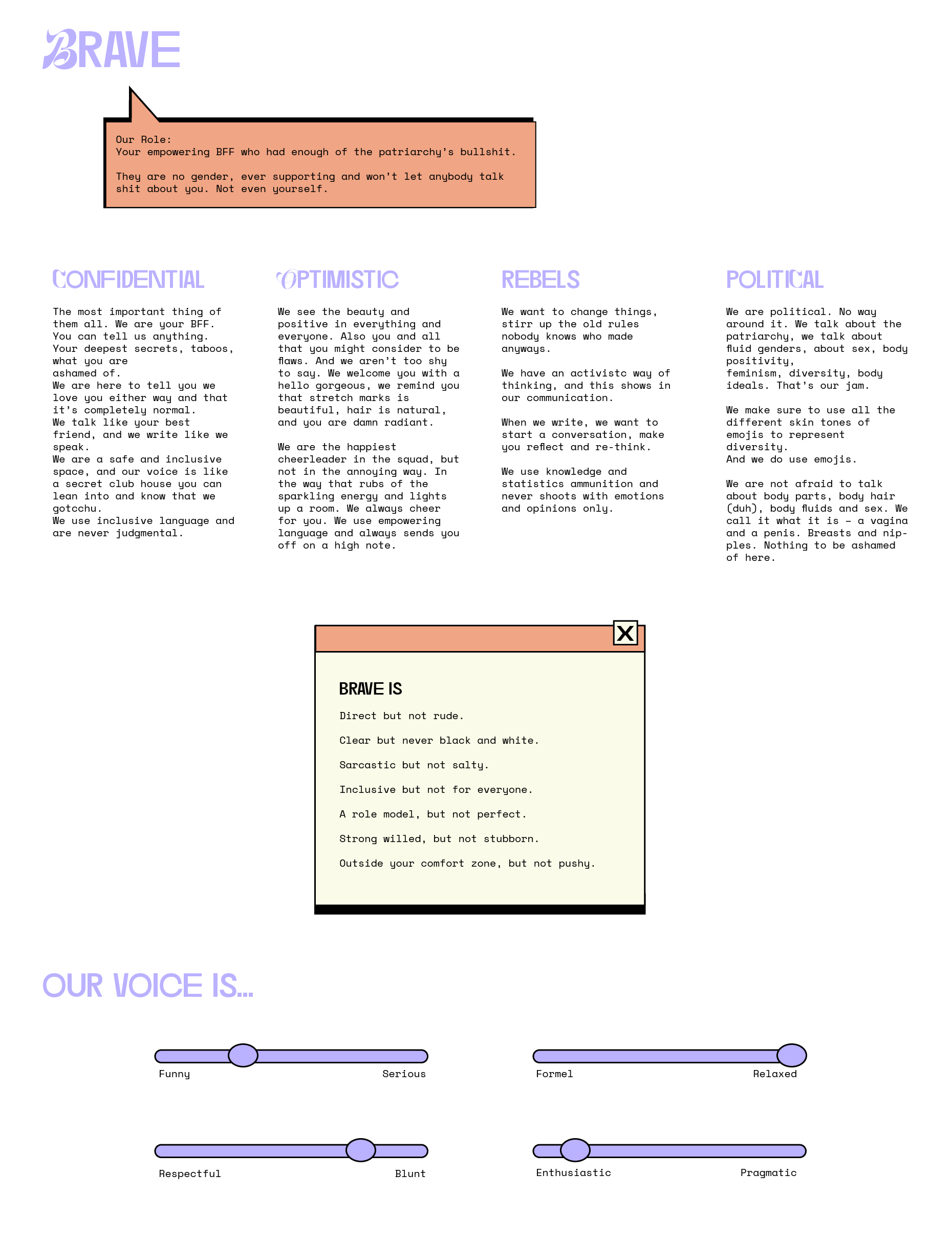 You get a tone of voice guide. Dive in and learn about Brave’s voice.